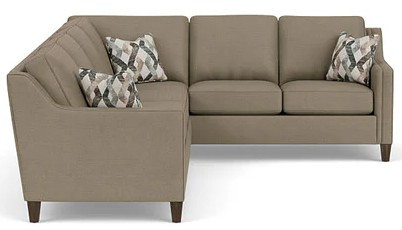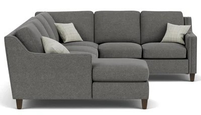 Simplicity and elegance combine in a sophisticated silhouette with the Finley sectional. With a distinctive profile featuring sloped, tapered track arms and attractive welt detailing, this modular design allows you to create your perfect size and configuration. The semi-attached back and removable, rearrangeable seat cushions make it easy to clean and maintain your sectional. Complete with our included accent pillows to elevate the look. This stately frame sits on sleek, square-tapered legs and is available in hundreds of fabric options to suit your style.