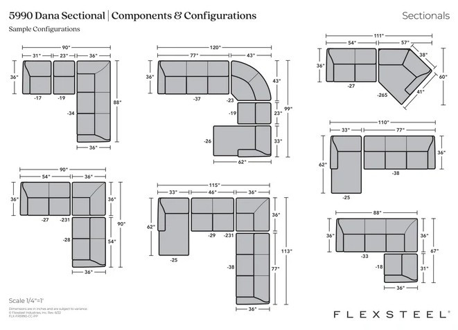The Dana Sectional is current and stylish, yet simple enough to withstand the test of time. This modestly scaled style is a great option for small spaces. With a tightly padded back, tailored roll arms and tall tapered feet, Dana fits classic touches into a streamlined design that lends openness to any space. Multiple sectional components provide countless configurations to fit any room's shape and scale.