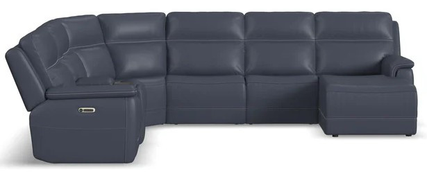 Get the support you need and the comfort you deserve with the Sawyer power reclining sectional. Padded arms cascade down into contoured seats with waterfall chaises for continuous comfort, while the eye-catching cross-stitch detail elevates your space. Customize the recline, headrest and lumbar support with the touch of a button and experience the weightlessness of Zero Gravity when fully reclined. The Sawyer sectional is designed for life with its high-quality leather upholstery and Flexsteel’s patented Blue Steel Spring™ at the heart of each seat.