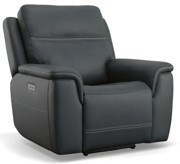 Transform your living space with the Sawyer power recliner with power headrest and lumbar, a perfect blend of comfort and style. This stunning design features high-quality, marine blue top grain leather upholstery with unique cross-stitching and a distinct arm silhouette, adding a sophisticated touch to any room. Customize your comfort with power recline, headrest and lumbar support at the touch of a button and experience Zero Gravity reclining, relieving pressure from your joints. Designed for durability and longevity, this recliner includes Flexsteel’s patented Blue Steel Spring™, providing unmatched seat comfort and durability that you can count on.