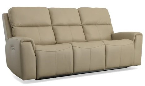 Create a home theater vibe in any living space with the Jarvis leather power reclining sofa with power headrests. Stay comfy, no matter your size or shape, thanks to headrests and recline you can control independently using one of the power controls located on either side of the sofa. Built-in USB ports within the power controls conveniently allow you to charge your devices without having to get up. Zero Gravity recline technology gives you a feeling of weightlessness as you relax, while Flexsteel's patented Blue Steel Spring™ ensures the sofa offers you an optimal range of motion. This design has a look that will enhance your living room with clean lines, sleek pad-over arms and decorative cross-stitching.