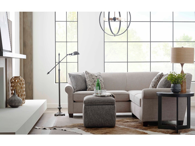 Angie can only be described one way Sleek, simple, and super comfortable. Its clean silhouette is achieved with a tight back, a P-shaped roll arm, and an exposed wood leg. This fashion-forward silhouette can go from understated and sophisticated to fabulous and fun with the change of a fabric. We offer a sofa, loveseat, chair, ottoman, floating ottoman chaise, and sectional, as well as twin, full, and queen sleepers in this collection.